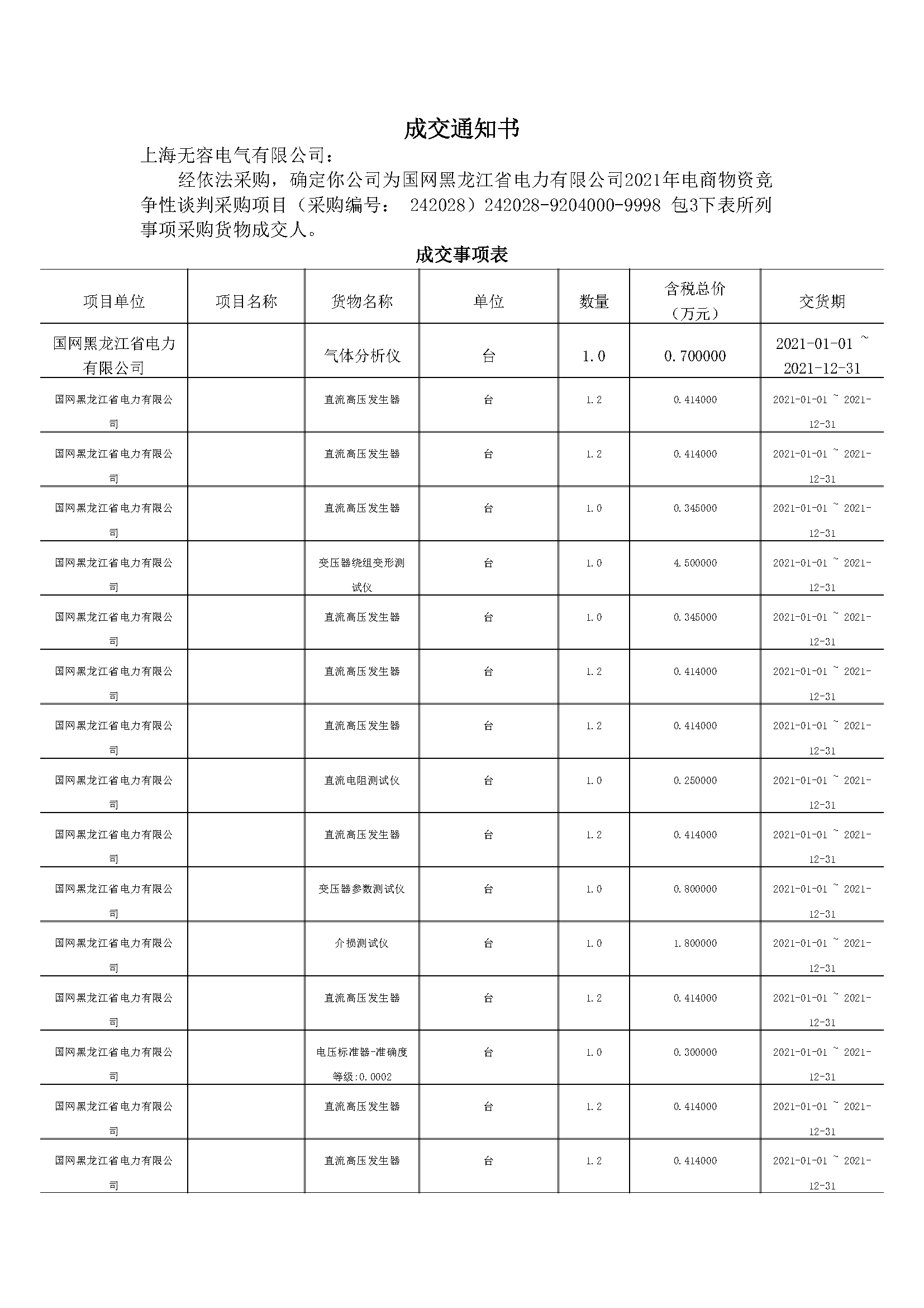 黑龙江中标通知书