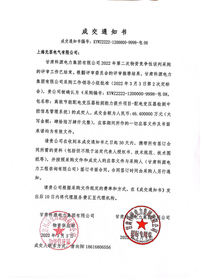 甘肃中标通知书