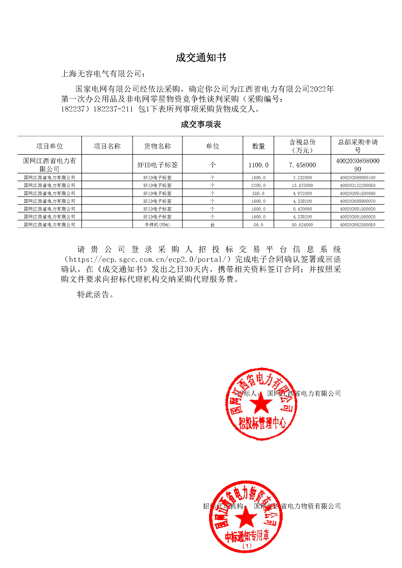 甘肃中标通知书