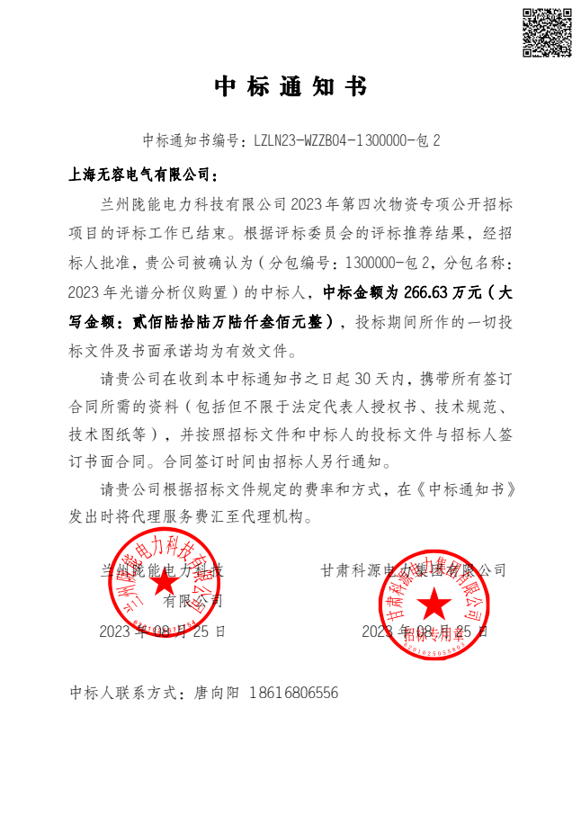 甘肃中标通知书